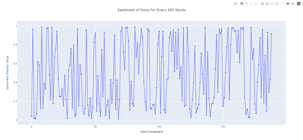 Unfortunately, logic does tend to go out the door for a lot of these sentiment polarities. We take a look at Dune (1965) by Frank Herbert: