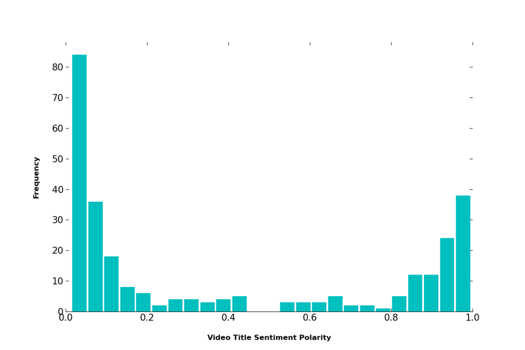 Another set of metrics we check are the sentiment scores of video titles and video transcripts. We hypothesize that video titles that are more polarizing tend to trend more towards “clickbait” and video transcripts that are more highly polarized tend to be geared towards entertaining audiences. We utilize a BERT model trained on the IMDB dataset.