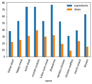 We investigate recipe quality through the amount of ingredients and instructions required to complete them. We hypothesize that recipes that are poorly developed and not suitable for the average person tend to be overly convoluted and have lots of ingredients and instructions. We believe this also extends into the “entertainment” part of things, as convoluted recipes can be more fun to watch and allow the creator to display their technical skill. To accomplish an analysis of recipe complexity, we scrape recipe websites and use CRF, POS tagging, and other methods to grab out number of ingredients and steps.